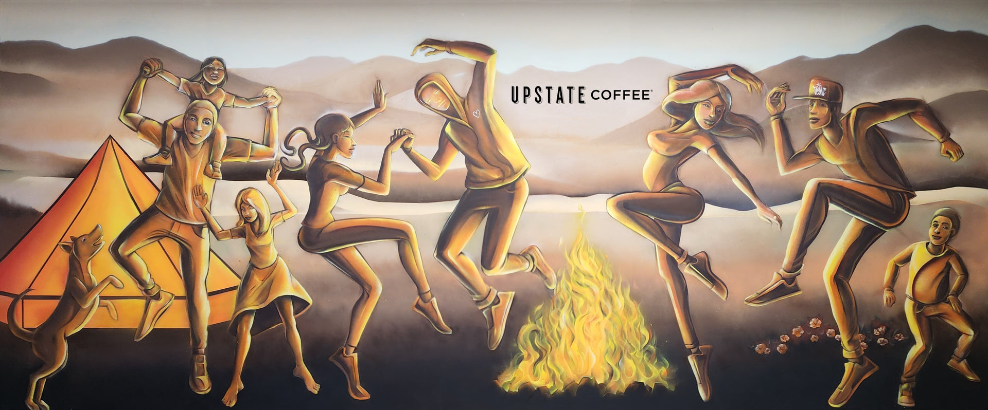 Our mural in the Upstate Coffee roastery painted by Tony Carter is a master peice and is the backdrop of our roaster.