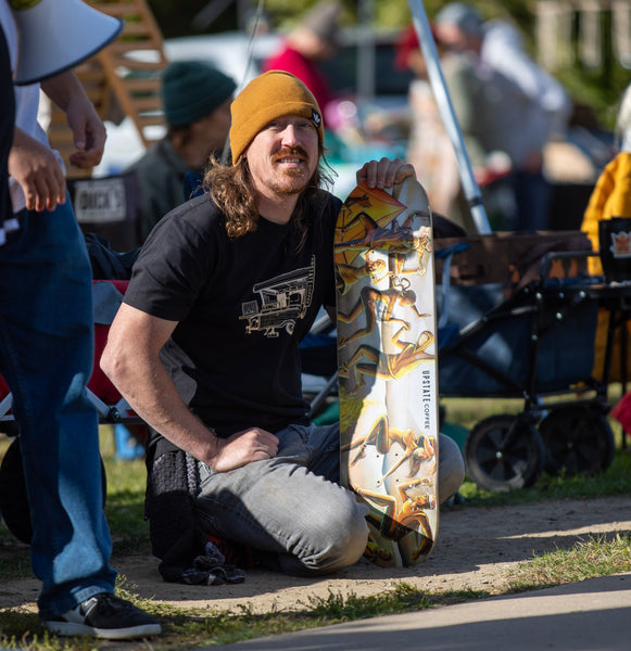 We thought it would be so cool to put the mural on a few boards to give away as prizes at the competition. Two boards were given away as top prizes. Best Trick and highest ollie.